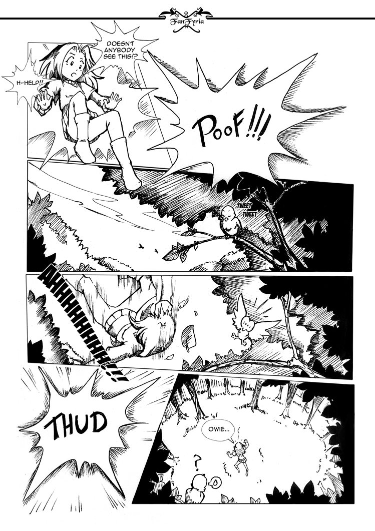 Like the art so far. It’s more or less typical manga, but still has a funny extra to it. Especially the bird with its giant eyes looks like it jumped right out of one of the old times comics. (Like, the old Walt Disney comics. Good times, good times.) Only thing I’m missing right now is the look on our still unknown heroine’s face. Guess it could have been a funny picture, too. *grin*